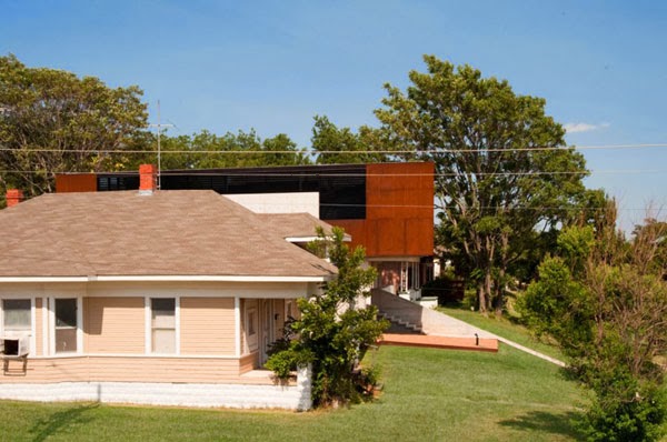Fitzsimmons Architects have completed a 1,740 square foot contemporary residence in Oklahoma, USA. According to the architects, the idea was to develop a home that would respond to the Oklahoma climate: ” The result is a modernist approach, uniting a simple composition of concrete, glass, and steel. The house size is more reserved in terms of square footage, but the open floor plans combined with large areas of glazing help create spacious connections throughout the inside and neighborhood beyond. Moreover, the terraces and elevated patios help to extend the open floor plan further, blurring the distinctions between interior and exterior. The insulated poured-in-place concrete walls combined with geothermal heating and cooling allow for an innovative and energy efficient solution to comfort, while the recycled maple and rubber flooring work with the exposed steel structure and concrete walls to produce a simple yet invigorating interior.Oklahoma Case Study House has a contemporary design and captures views of the Oklahoma skyline.