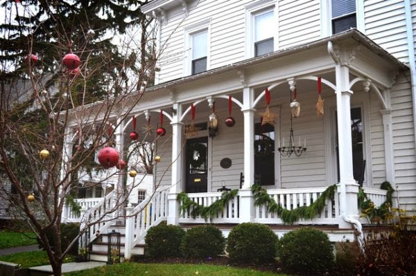 Fun, easy and festive, use some of those extra large ornaments to line your porch or patio. You can see them from the road and they’re just plain playful and adorable.